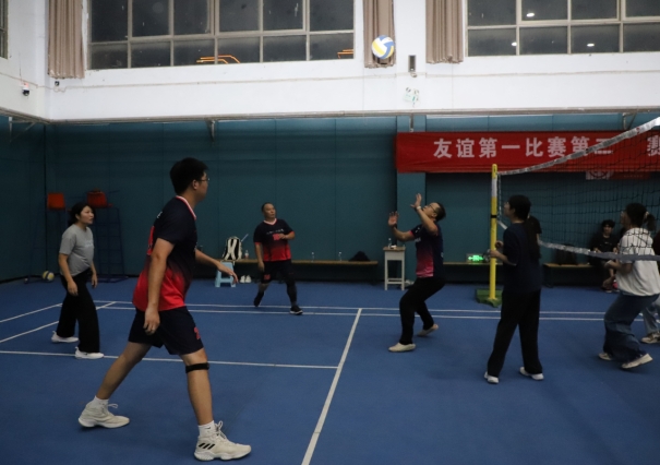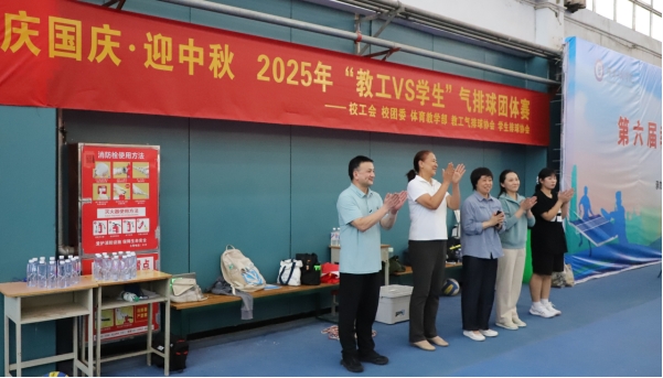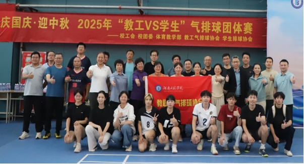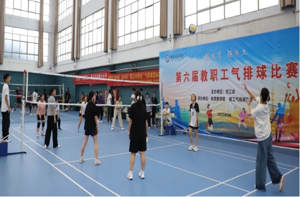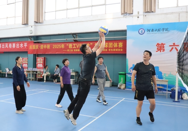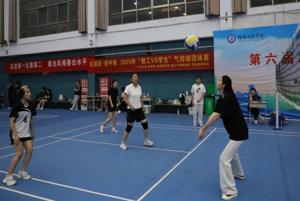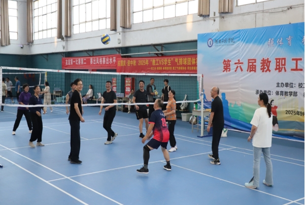 9月25日下午,在龙湖西校区体育馆,教职工气排球协会组织开展以“强体育•强河工”为主题的庆国庆•迎中秋2025年“教工VS学生”气排球团体赛。