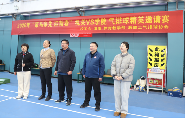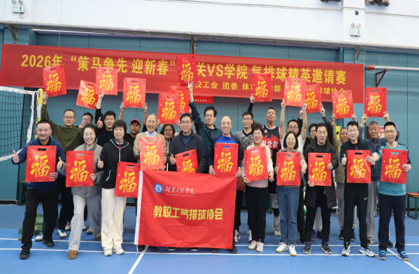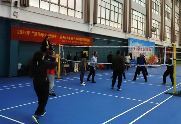 为积极推进我校“强体育 强河工”计划,增强团队凝聚力,营造积极向上、团结奋进的迎新氛围。元月12日下午,在龙湖西校区体育馆,我校教职工气排球协会组织开展2026年“策马争先 迎新春”机关VS学院气排球精英邀请赛。气排球协会名誉会长张瑞林副校长,校工会副主席卞卡出席活动,校团委、体育教学部和气排球爱好者近30人参加了本次邀请赛。