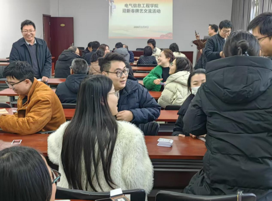 2026年1月7日下午,电气信息工程学院成功举办了一场别开生面的“迎新春”牌艺交流活动。此次活动旨在通过传统牌艺这一文化载体,加强教职工之间的沟通与交流,增强团队凝聚力,共同迎接新的一年。