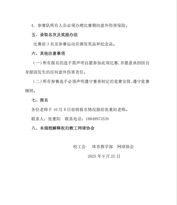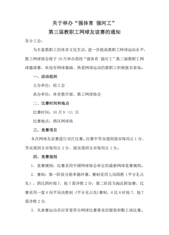 关于举办“强体育 强河工”第三届教职工网球邀请赛的通知