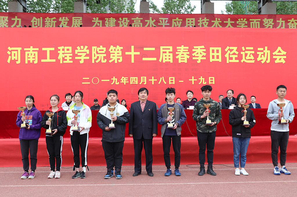 校党委书记刘湘玉,党委副书记李春英,副校长王永恒、贺金凤分别为获奖集体颁奖。党委副书记李春英致闭幕词。她首先代表学校党委和行政,向在本届运动会中取得优异成绩的运动员和代表队,表示热烈的祝贺!向积极参加本届运动会的全体运动员、裁判员以及为筹办本届运动会付出辛勤劳动的工作人员,表示衷心的感谢!她希望全校师生员工以此次运动盛会为契机,积极参与体育健身活动,以强健的体魄、昂扬的斗志投入到工作和学习中去;把本届运动会所焕发出的抢抓机遇、团结协作、顽强拼搏、勇于竞争的精神,倾注到学校事业发展中去,以体育事业高质量推动学校事业发展高质量,为建设示范性应用技术型大学和早日实现“三步走”发展战略做出新的更大贡献。最后,李春英宣布:河南工程学院第十二届春季田径运动会闭幕!